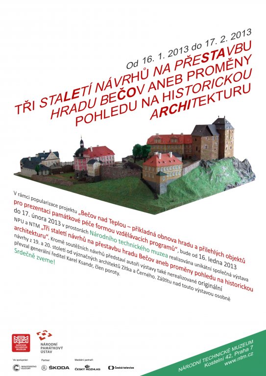 Ve dnech 16. 1. – 17. 2. 2013 bude v prostorách Národního technického muzea realizována unikátní společná výstava Národního technického muzea a Národního památkového ústavu s názvem „Tři staletí návrhů na přestavbu hradu Bečov aneb proměny pohledu na historickou architekturu“.