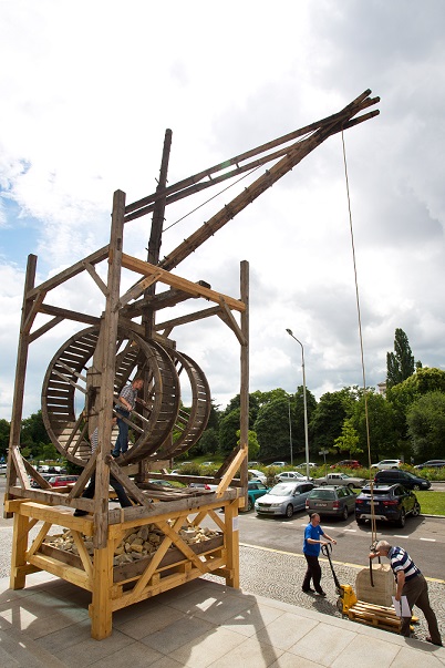 10.00 a 14.00 – ukázky fungování středověkého dřevěného jeřábu za pomoci jeho věrné repliky umístěné před budovou NTM