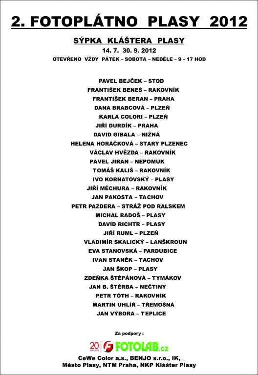 Vybrané objekty bývalého klášterního areálu na severním Plzeňsku, kde NTM realizuje projekt "Centrum stavitelského dědictví Plasích" , jsou letošní léto opět zpřístupněny veřejnosti. Podobně jako v minulých letech mohou návštěvníci navštívit s průvodcem klášterní sýpku s unikátní gotickou dvoupodlažní „Královskou kaplí“ i hodinovou věž se strojem, který plaské kotlině měří čas již od roku 1686. V sýpkových patrech je pak k vidění zdařilá instalace II. ročníku velkoformátových fotografií „Fotoplátno Plasy 2012“ a výstava výtvarníka Pavla Hauera s prostým názvem „Papíry“. K večerní návštěvě Královské kaple bude mimořádná příležitost 21. července, kdy zde v předvečer svátku sv. Máří Magdaleny bude od 20:30 hod. poprvé po mnoha desetiletích sloužena poutní mše.