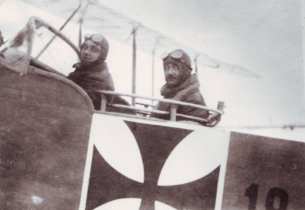 Popiska foto: Karel Mašek při zalétávání letounu Knoller C.I 19.22 v únoru 1917 na letišti Aspern. Foto archiv NTM.