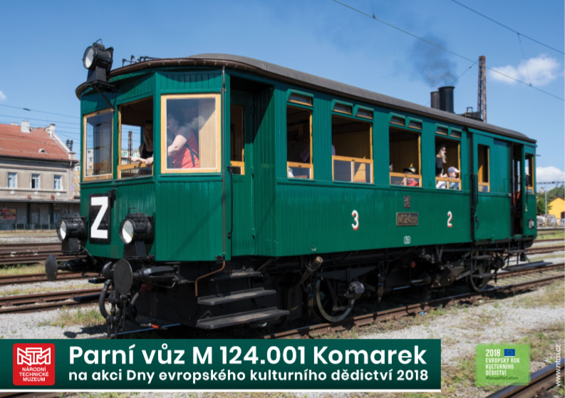 Společně s partnery jsme připravili dvě akce s parním motorovým vozem M124.001 Komarek v okolí Chomutova. V sobotu 8. 9. bude Komarek jezdit mezi chomutovským depozitářem NTM a Černovicemi na trati 137, v neděli se pak vydá do Kadaně a bude zájemce vozit přes 25 vysoký most nad Ohří do Želiny a zpět. Jízdy se konají u příležitosti Dnů evropského kulturního dědictví.
