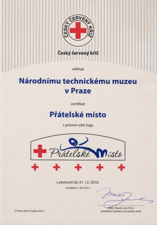 Národní technické muzeum tuto neděli 8. ledna 2012 slavnostně převzalo certifikát Přátelského místa.