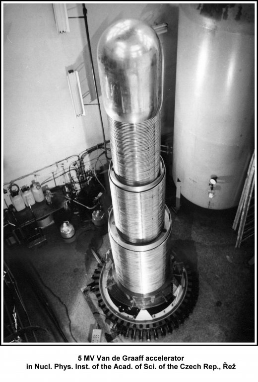 Elektrostatický generátor velmi vysokého napětí (5MeV) typu Van de Graaff, ve kterém je integrován lineární urychlovač nabitých částic, je v podstatě o jediné zařízení tohoto typu a v této velikosti v Československu a později v České republice.