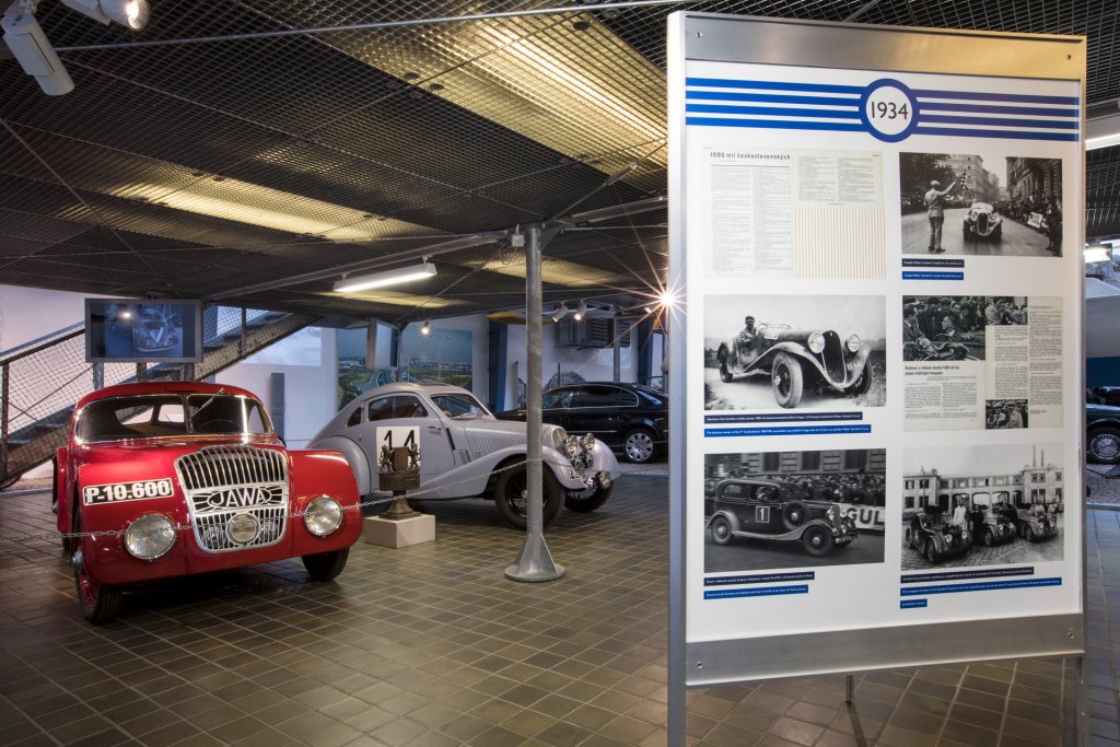 The history, as well as the present of the race, is now remembered by our little exposition in Transportation hall of the NTM. This exhibition presents some of the cars that attended the races in the era of First Republic: Aero 750 Sport Coupé, Wikov 7/28 and Jawa 750, also some of prizes and plaques are displayed together with the cup for the absolute winner of the third race.