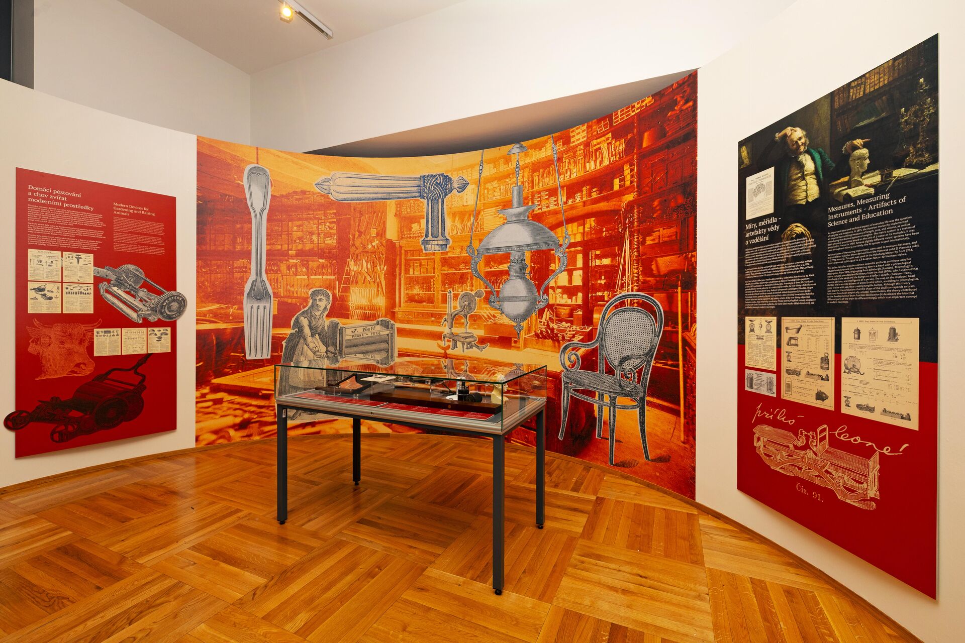 The exhibited objects come from the following areas: household management, including a section on gas cooking, which Náprstek strongly supported; aids and tools for trades; equipment for domestic plant cultivation and animal keeping; protective devices; models related to safety and firemen’s work; as well as interior elements and components. The second‑to‑last section is devoted to units of measurement and scientific and educational artifacts, while the final section is dedicated to travel equipment.