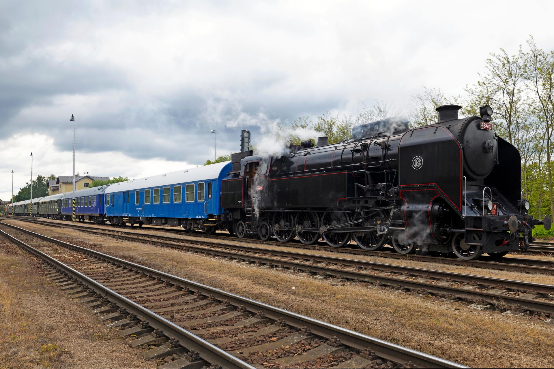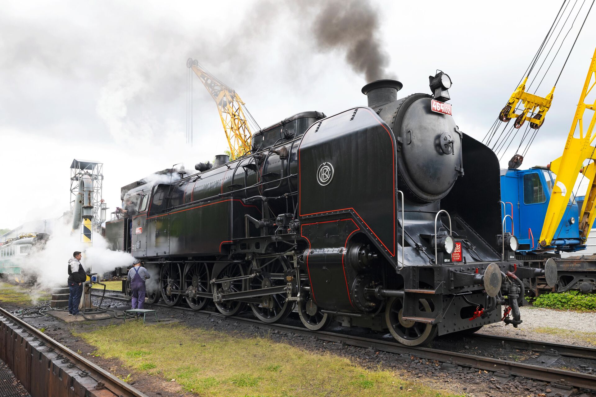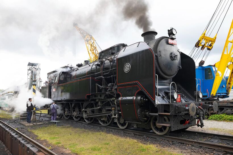The train will be hauled by steam locomotive 464.102 "Ušatá" from 1940, a unique example of the interwar Czechoslovak steam locomotive design school. The locomotive served on main lines until 1978 before being transferred to the NTM collections. After a demanding renovation completed in 2023, the machine was restored to perfect technical condition, ensuring long-term functionality. It also received a representative appearance matching the 1950s era. The train set will include typical and unique vehicles manufactured in the 1970s–1980s.