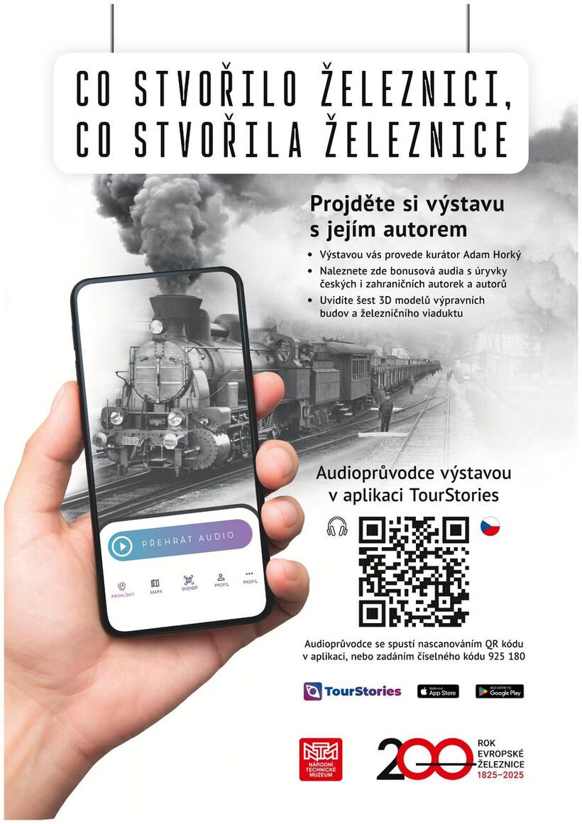 Díky průvodci v aplikaci TourStories pro mobilní telefony si výstavu můžete projít s jejím autorem Adamem Horkým. Naleznete zde bonusová audia s úryvky českých i zahraničních autorek a autorů. Uvidíte šest 3D modelů výpravních budov a železničního viaduktu.